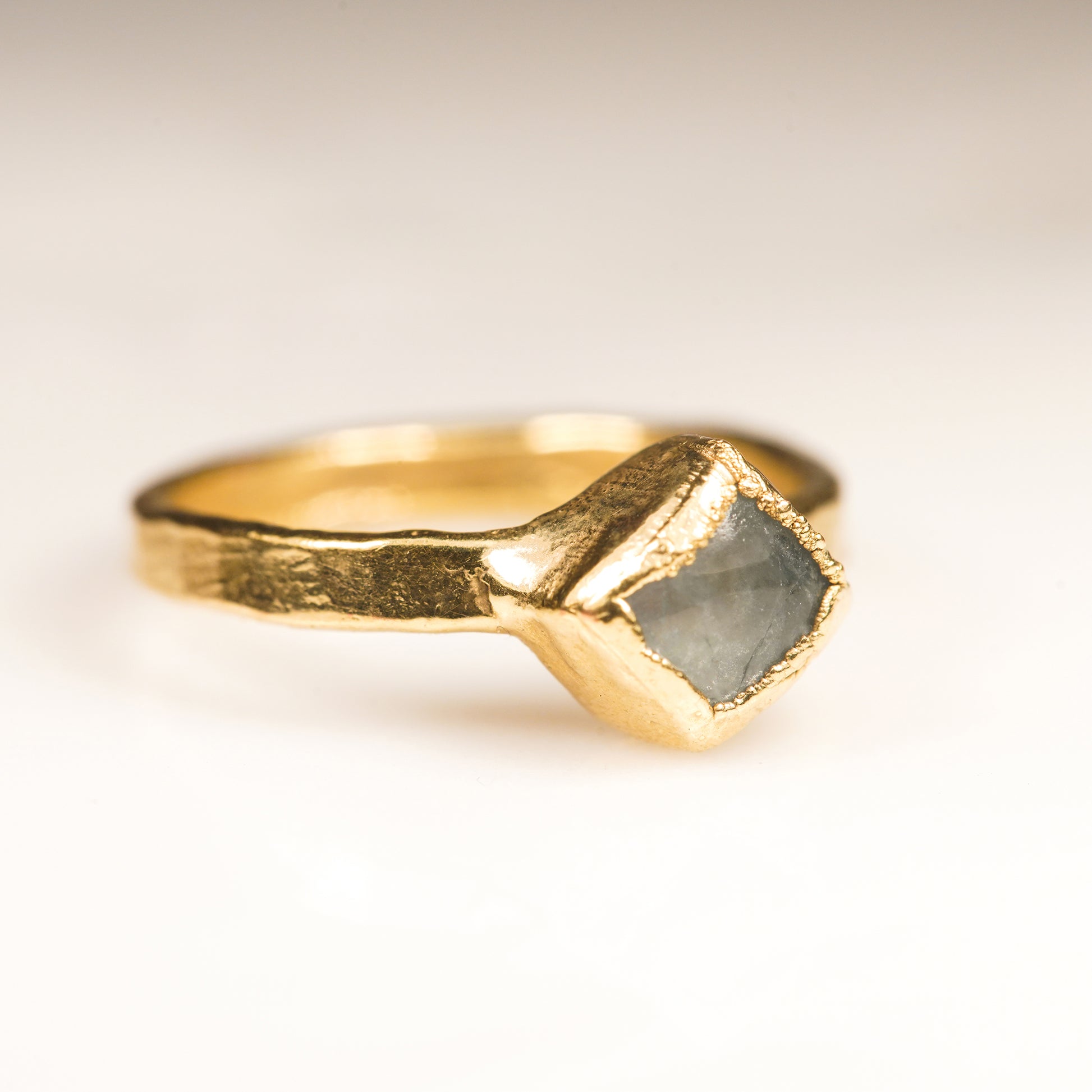 Aquamarine electro-formed over a copper ring cover with gold 14k.