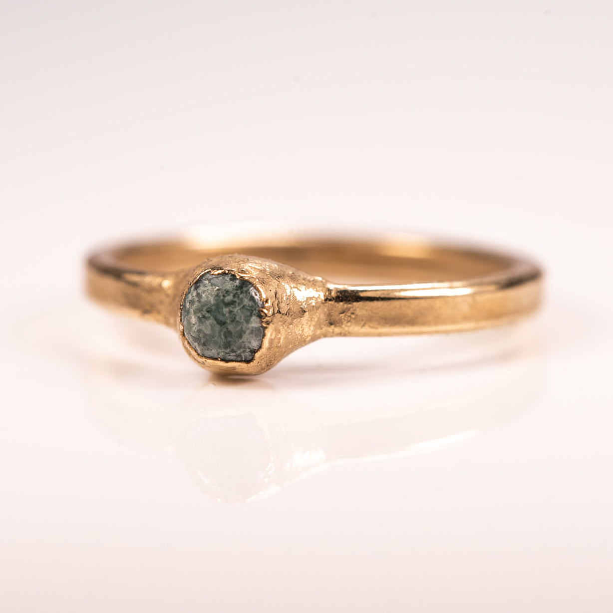 Mayan jade ring, electroformed with copper and gold plated with 14k gold. August birthstone.