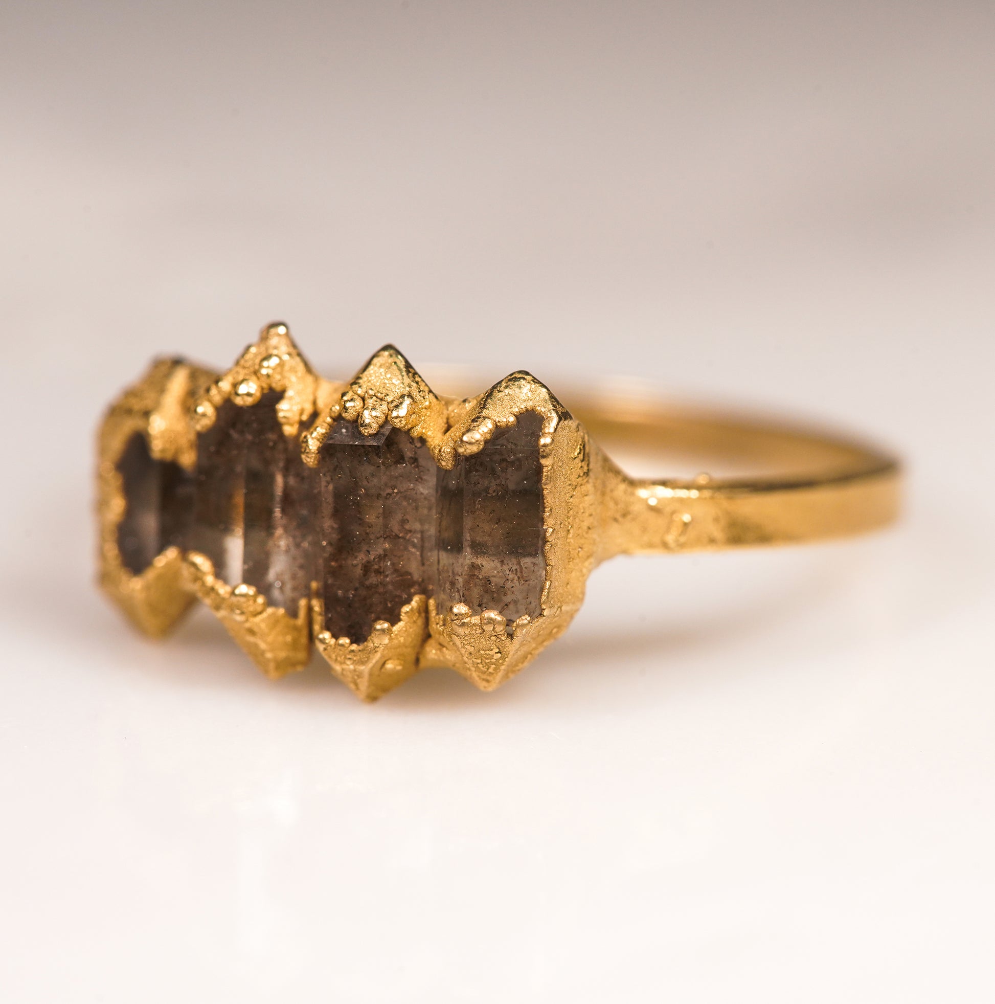 Herkimer diamond electro-formed over a copper ring cover with gold 14k.